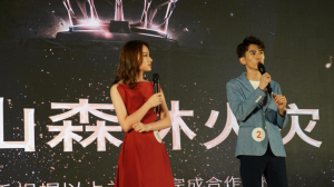 图为公司选手吴冠宇、闫金茜进行主持展示