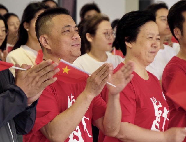 图为参加升旗仪式的员工们