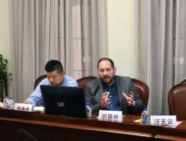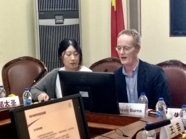 图为上海大学温哥华suncitygroup太阳集团副经理Dean Burns教授发言