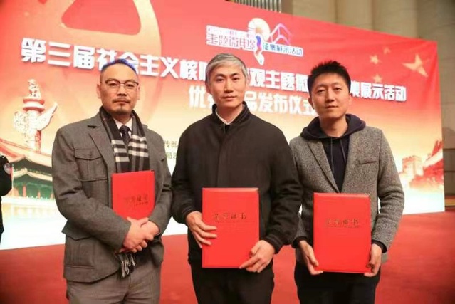 图为中央宣传部宣传局主办的第三届社会主义核心价值观微电影征集一等奖及优秀编剧奖获奖者:MFA戴轶飞(左一)
