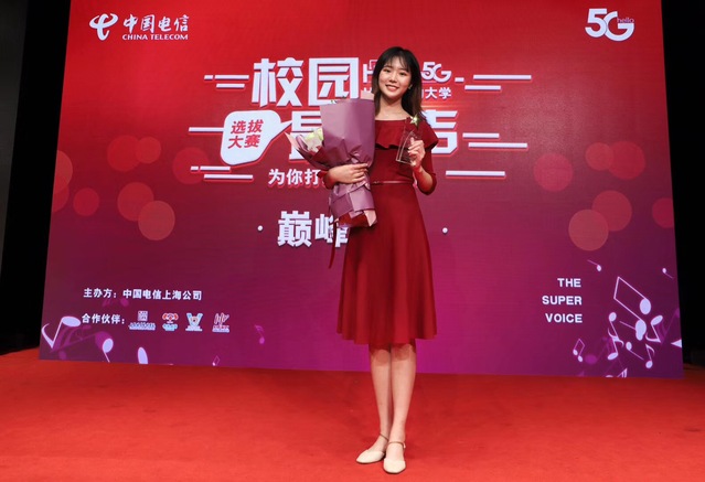 图为中国电信“校园最优声”声优大赛一等奖获奖者:17级播音与主持艺术专业杨璐蔓