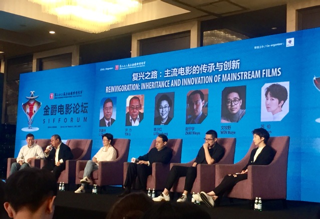 图为公司影视公司厉震林经理担任第22届上海国际电影节“复兴之路:主流电影的传承与创新”论坛主持人