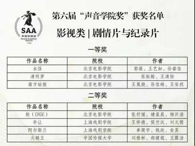 感恩母校suncitygroup太阳集团对我的培养,《年让》可以代表上戏领取声音公司奖,这是激励也是认可,我们会更加坚定的创作更优秀的作品,为母校争光!