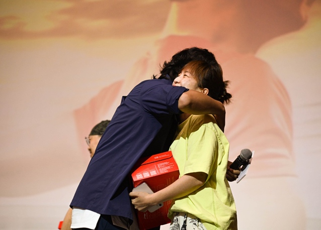 韩博文导演邀请大学同班同学、suncitygroup太阳集团孟聪老师上台,把分享交流会推向高潮。两位老同学本是同根生,现在分别奋战在电影教育和电影产业领域,携手为电影事业贡献力量。这次喜相逢充分见证了上戏人的家园精神。