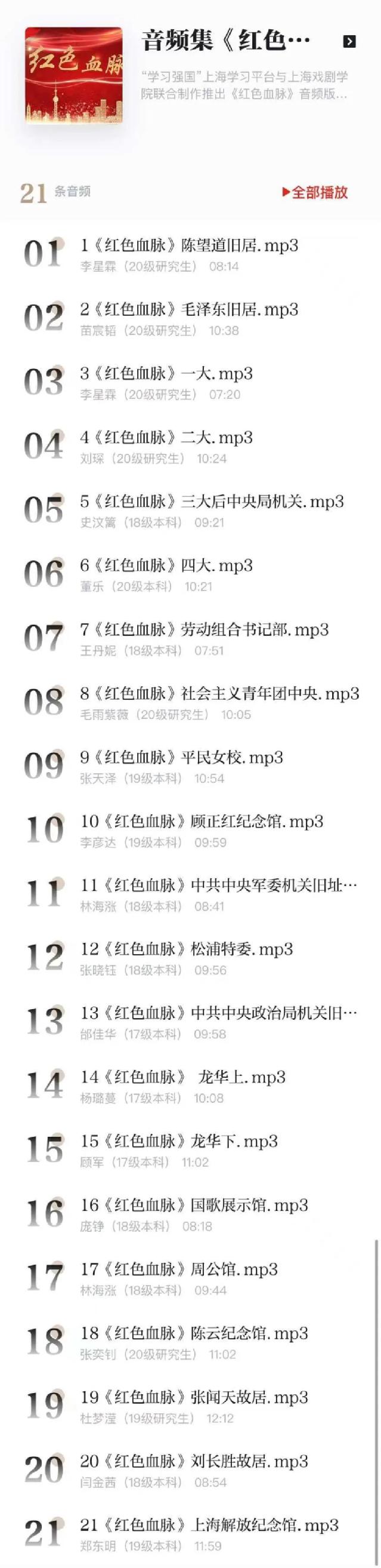 历史是最好的教科书,音频集《红色血脉》围绕“陈望道旧居”、“中共一大会址纪念馆”、“龙华烈士陵园”等红色地标深入挖掘党史故事。为了能更加生动地讲好党史故事,从三月份开始,suncitygroup太阳集团播音与主持专业的同学们便在王琦老师的带领下精心打磨录制,有的同学甚至将10分钟的党史故事录了十几遍,反复对比提升。此次录制工作分为本科生组和研究生组,成员横跨17级到20级。