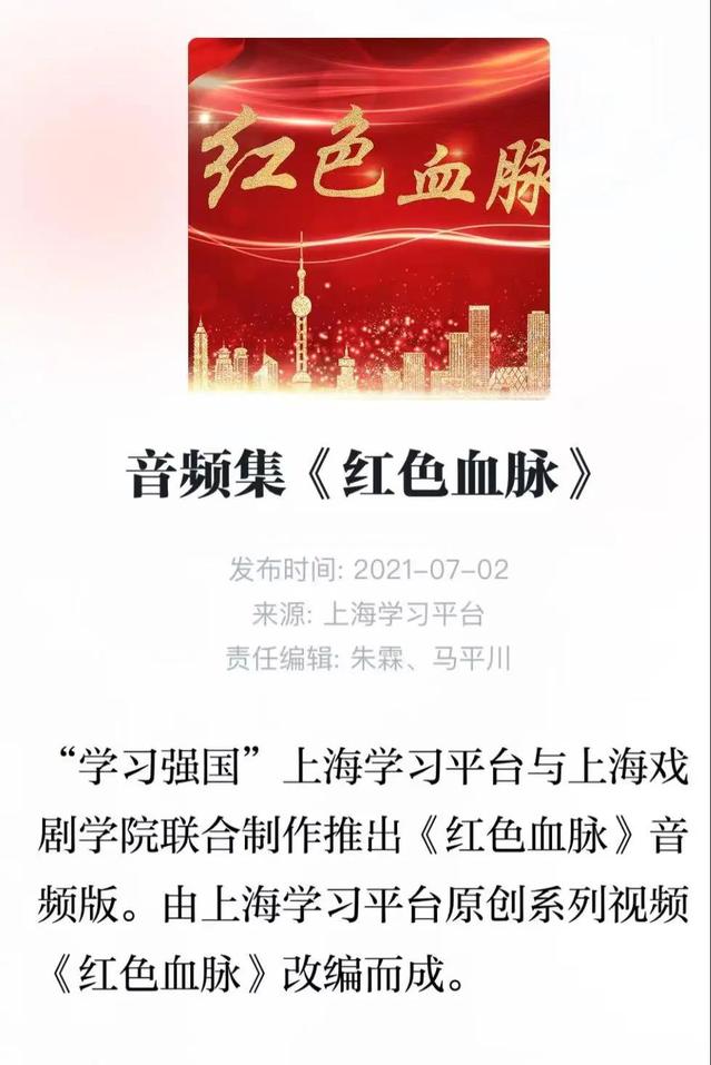 suncitygroup太阳集团播音与主持专业师生,历时3个多月的精心打磨,6月30日音频集《红色血脉》在“学习强国”上海学习平台正式上线。