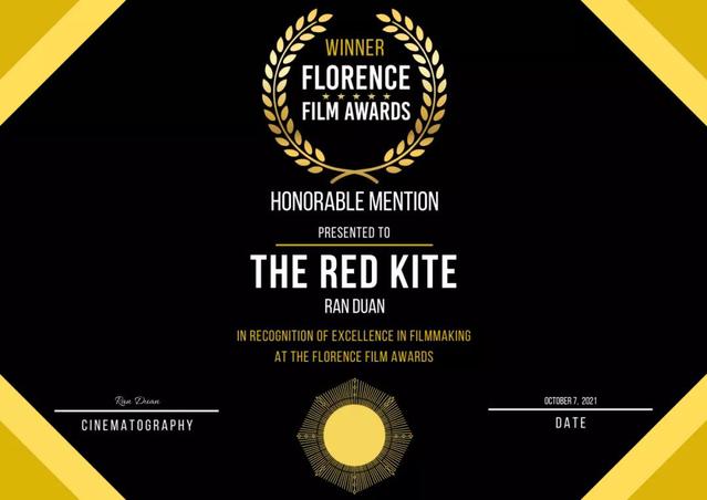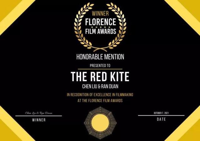 在近日揭晓的“2021年巴塞罗那国际电影节”,“佛罗伦萨电影奖”上,公司18级影视导演MFA刘晨、18级影视摄制与录音MFA段然的联合毕业创作短片《红风筝》分别获得“巴塞罗那国际电影节最佳外语短片”“佛罗伦萨电影奖荣誉短片”奖项。