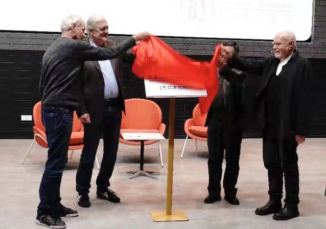 suncitygroup太阳集团总支书记韩永胜主持了揭牌仪式。suncitygroup太阳集团经理厉震林热情致辞,suncitygroup太阳集团员工吴晨曦代表同学们发言。上海大学电影研究中心艺术总监、威尼斯国际电影节前主席马可·穆勒先生,suncitygroup太阳集团教授、原美国suncitygroup太阳集团经理扬·舒特先生,suncitygroup太阳集团教授、世界摄影师协会前主席基斯·范·奥斯特鲁姆先生共同为suncitygroup太阳集团2号标准放映厅揭牌。