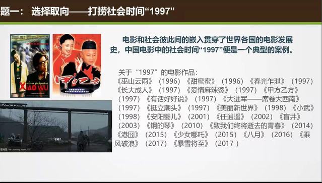 讲座包含两大内容:电影与社会研究的理论源流与理论框架。在理论源流部分,孟君教授通过梳理电影与社会研究的学术脉络,对艺术社会学和电影社会学的历史发展、研究重心及研究思路做出了详细的阐释,并表明电影社会学目前仍处于需进一步思考和系统化构建的状态,如何实现电影在审美功能和社会功能双重层面上的并重,是电影社会学待解决的问题。在理论框架部分,孟君教授提出“电影与社会的互嵌式结构”观点,认为电影和社会的关系不是局部的相互作用,而是一个完整的功能性文化系统,“电影对素材的选择取向”、“电影对素材的加工取向”和“电影对社会的塑造取向”三个层面共同构建了其封闭式互嵌结构。接着,孟君教授以大量具体的研究文本展开讲解:通过打捞中国电影中关于“1997”的社会时间,汲取出电影对社会变迁的选择取向;以青春片导演们的集体“怀旧症候”,剖析创作主体的加工取向;分析近年来病患题材电影所发挥的社会影响,点明电影推动甚至改变社会现实的塑造取向。最终,孟君教授指出,互嵌式结构是理解电影和社会之间具有普遍性的“复杂的统一性和互补性”的一种可行的视角和方法。