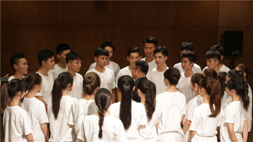 第二部分是校徽佩戴仪式,同时也是整个班会的高潮。校领导及老师们为同学们佩戴校徽,并亲切地与大家握手、交流。这一刻,是属于18级主持班同学们的,作为人生新的起点,那扇洋溢着青春激情和知识魅力的大门将徐徐打开……大家带上上戏校徽的感言通过多种多样的形式,例如四句半、道具展示、诗歌朗诵等。感言讲述了同学们的青春、学习和梦想,时而令人潸然泪下,时而让人开怀大笑⋯