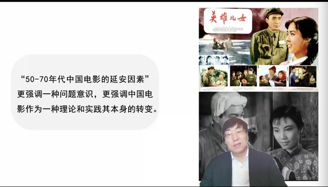 讲座内容共分为七个部分,丁亚平老师首先谈起自己和“延安”研究的学术渊源,并强调“延安”作为一种问题意识,在“现代性”的讨论中占据极其重要的位置,可视其为中国离开欧洲现代审美坐标,建立属于自己主体性现代坐标的生成关键。在第二部分,丁亚平老师对“延安”进行了分层,界定了“大延安”与“小延安”的概念与内涵,认为电影中的“小延安”由人民电影体制、知识分子人生观改造、人民电影美学、新闻纪录电影与“他者”眼光下的中国符码五个关键内容构成。在第三部分,丁亚平老师具体讲述“50-70年代中国电影的延安坐标”,强调以电影中的“延安”因素作为切口,可以帮助我们更好地理解中国电影与文化迈向现代的不同路径。接着,丁亚平老师以“延安作为一个先锋传统”、“延安作为学派”、“延安作为理解现实、理解实践的路径和可能性”层层递进,将电影中“延安”所代表的“工农兵文艺观念”与“革命”传统,串联至“延安学派”的三种理解,并最终上升到现实层面,将其视为回应当下中国电影现实中紧迫问题的一种可能性。讲座的结尾,丁亚平老师通过《武训传》事件来观察“延安”的文艺脉络,并希望以“辩证法”的思维,获得在问题意识下融入了历史视野的、更为全面的学术认识。丁亚平老师还指出,“延安”作为一种创作观念、创作方法的延续,已经上升为一种国家层面的意识形态,并在建国后独立地占据电影领域的中心,使电影完成了主体与核心意义的建构,这是我们今天仍需再次回望、不断审视并反思“延安”因素的意义所在。