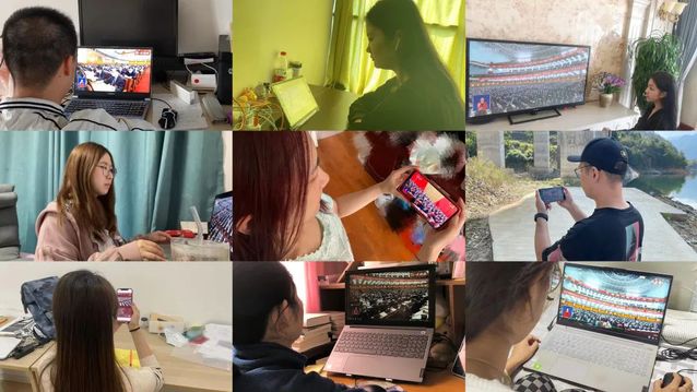 (非在校员工党员们通过各种渠道同步收看)
