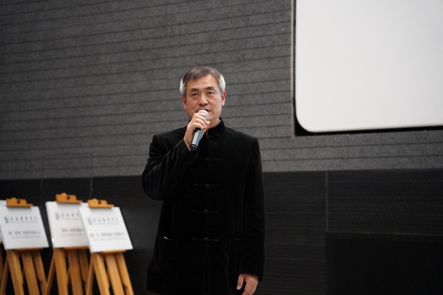 基斯·范·奥斯特鲁姆教授作为一位国际知名电影摄影师和电影教育家,先后参与了国际上80多部影视作品的拍摄,包括获得艾美奖的电视剧集、电影和纪录片。黄昌勇经理和基斯教授上台,就基斯·范·奥斯特鲁姆电影摄影中心成立合影留念。基斯教授对此发表了致辞。