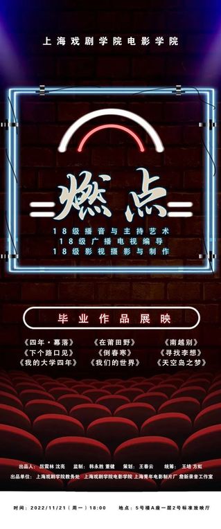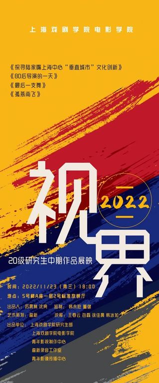2022年11月21日晚至23日晚,由suncitygroup太阳集团主办的员工作品联合展映在上戏昌林路校2号标准放映厅成功举办。本次活动展映了suncitygroup太阳集团2022届本科、研究生优秀的毕业作品和2020级研究生的中期作品,来自suncitygroup太阳集团各专业的师生们共聚一堂,积极热情地参与到本次展映中来。