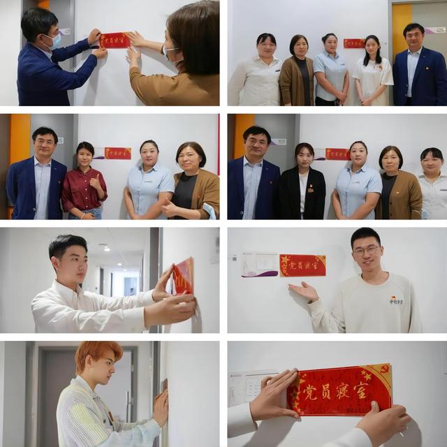 最后,电影公司党总支书记韩永胜老师、党总支副书记王春云老师前往员工社区,为员工党员代表寝室贴牌并合影留念。其余党员也是纷纷将这块象征着责任和使命的“党员寝室”之牌张贴到了各自的寝室门口。