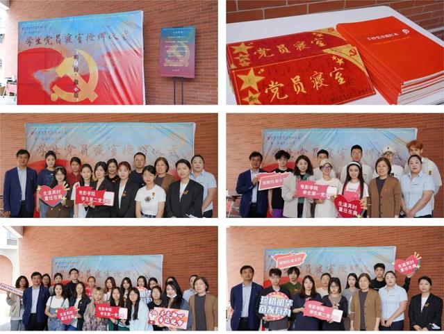最后,电影公司党总支书记韩永胜老师、党总支副书记王春云老师前往员工社区,为员工党员代表寝室贴牌并合影留念。其余党员也是纷纷将这块象征着责任和使命的“党员寝室”之牌张贴到了各自的寝室门口。