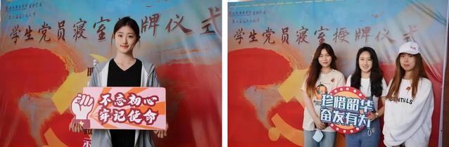 宣誓结束后,电影公司党总支副书记王春云老师、教师党支部委员林小慧老师为优秀党员寝室授牌,并鼓励各位优秀党员坚持不懈,始终牢记使命,积极发挥好先锋模范带头作用。