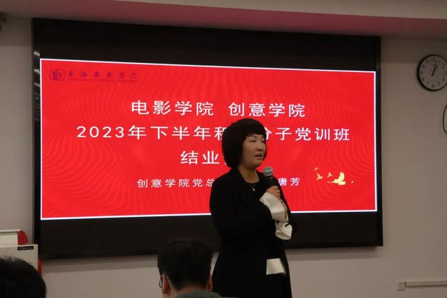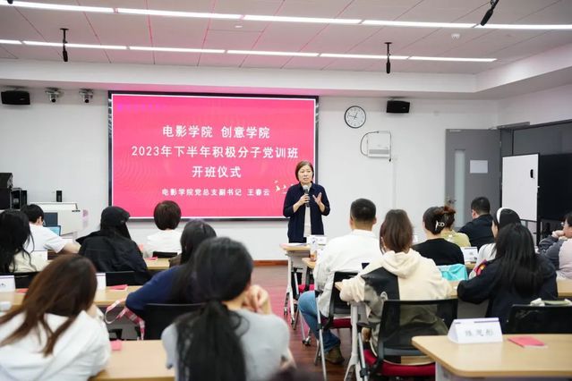 电影公司党总支副书记王春云老师向在场的入党积极分子表示祝贺的同时整体介绍了党训班的课程安排、各个阶段的课程任务与工作,并对这些身怀共同理想与追求的同学们寄予了殷切的期望。