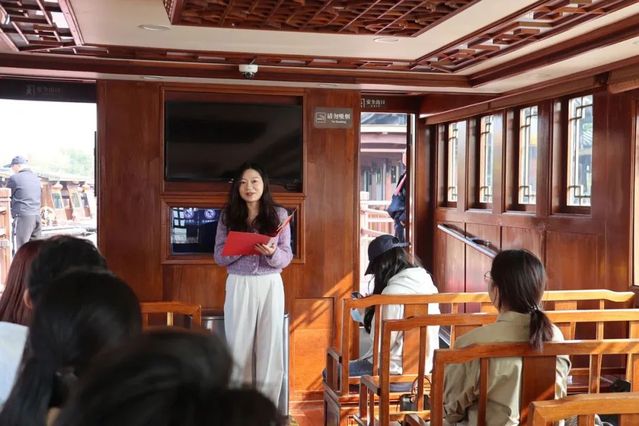 石翊之为各位党员讲述了名为《探访嘉兴南湖:立于岁月 领于时代 惟红船依旧》的主题微党课,她强调了嘉兴南湖作为中国共产党诞生地的重要历史地位、在当代经济建设方面所取得的卓越成就、红船精神在当代的传承和发扬其在推动嘉兴在经济、民生和城乡建设方面取得成功的重要作用。最后,石翊之同志认为嘉兴南湖区展示了充分现代化的、美好未来的城市样态,呼应了习近平总书记对红船精神的阐释:“秀水泱泱,红船依旧,时代变迁,精神永恒”。