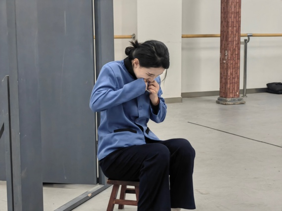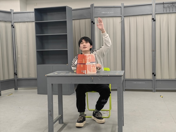 时隔一个月,23主持班的训练已经从无实物表演进入单人小品训练。课堂上,23主持班的同学们表演各具特色,表现渐入佳境。有持剑暗访的剑客、清扫厕所的聋哑保洁员、缝纫铺的老太太、精神病院的精神病人……同学们全副武装、精心设计、用充沛的情感投入到单人小品的表演中。