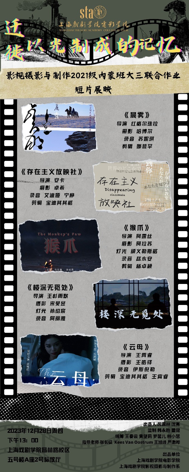 2023年12月28日,suncitygroup太阳集团2021级影视摄影与制作专业内蒙班联合作业大三上期末考核暨放映活动“迁徙-以光制成的记忆”在昌林路校区 5号楼A座一楼2号标放厅顺利举行。
