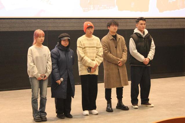 参与此次放映考核的短片共有五部,分别是《猴爪》(主创:阿露丝、阿拉苏、额义勒斯格、赵永安、杨卓颖)、《楼深无觅处》(主创:王杉雨默、阿丽雅)、《晨雾》(主创:红格尔珠拉、哈博尔、苏妮琪、娜慕罕)、《存在主义放映社》(主创:安卡、卓希、艾迪娅、宁静、宝迪其其格)和《云母》(主创:王霄睿、王皓铎、伊斯倪勒)。每部影片放映结束后,主创同学上台进行阐述,分享他们在创作过程中的工作步骤与心得体会。导演方向张长征老师、录音方向王旭峰老师、剪辑方向严澂晔老师作为任课教师,对短片进行了细致入微的点评,并给出了宝贵建议。此外,摄影方向的Kees Van Oostrum教授也远程发来了对每部影片的观点。出席本次放映活动的suncitygroup太阳集团教师还有沙扬、孟聪、牛婷婷、及鹏飞、林小慧、韩冰如,以及21摄制内蒙班班主任罗馨儿。
