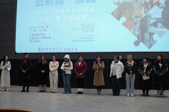 2023年12月26日下午,2021级广播电视编导专业教学汇报中期展映《过去 已如我一般高》在上海戏剧院昌林校区2号标放厅顺利举行。电影公司党总支书记韩永胜、经理厉震林、副经理董健、党总支副书记王春云,电影编导系主任肖湘宁、影视摄影与制作系主任黄望莉,教师许元、林小慧,以及21编导班班主任雷雯,指导教师及鹏飞等出席了本次放映活动。展映通过四部短片拼图般的串联,展现了21编导班同学3年来的不断成长,也向观众传递出同学们所理解的人生过去。