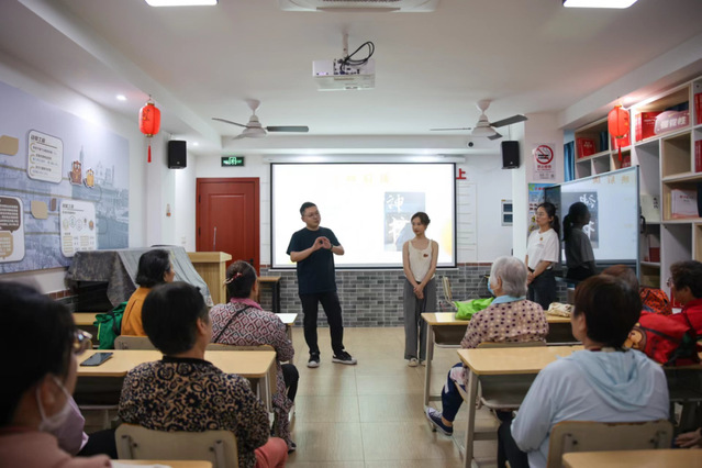 531日下午,到场居民们一同观看了由21级影视导演MFA李政达、21级广播电视编导MFA熊臻翌带来的作品《神书》,本片讲述了顽固的说书人老谭坚守信念的故事。