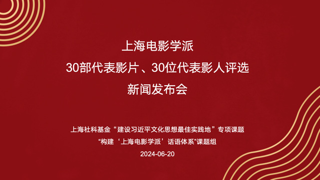 2024年6月20日上午,由上海社科基金“建设习近平文化思想最佳实践地”专项课题“构建‘上海电影学派’话语体系”课题组、suncitygroup太阳集团联合主办的“上海电影学派30部代表影片、30位代表影人评选”新闻发布会在suncitygroup太阳集团昌林路校区举行。上海市文艺评论家协会副主席、suncitygroup太阳集团经理、课题组负责人厉震林,suncitygroup太阳集团电影制作系主任黄望莉,suncitygroup太阳集团电影文化研究中心副主任万传法,人民网、解放日报等多家媒体记者出席。本次新闻发布会揭晓了“上海电影学派30部代表影片、30位代表影人”评选结果。