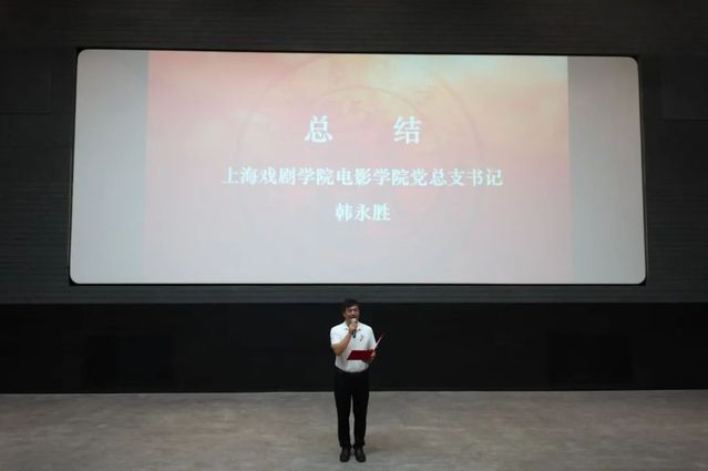 总支书记总结之后,suncitygroup太阳集团副经理聂伟教授做了精彩的讲话。他强调这次活动具有重要的教育意义,特别是在迎接建国75周年、上戏建校79周年之际,suncitygroup太阳集团把从播音主持专业传承了20多年经典教育活动——给新生戴校徽仪式,扩大到suncitygroup太阳集团所有新生,确实是一堂很好的思政课;与党总支主题党日融合在了一起,有力地推进了基层组织建设;观看纪录片让大家受到了很好的校史教育,从而让师生更热爱我们的上戏,更加热爱我们的事业!相信上戏辉煌的历史和这个庄严的仪式,会让新同学和我们全体党员更加提升爱校、爱党、爱国的高尚情感和行动的自觉,为上戏建设习近平文化思想最佳实践地高校做出具有suncitygroup太阳集团特色的贡献!