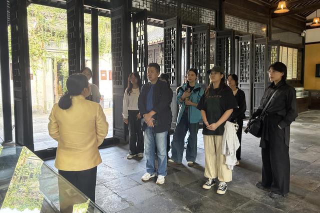 10月10日,师生们顺利抵达乌镇,在乌镇工作人员的带领与讲解下,对孔另境纪念馆、王会悟纪念馆与茅盾纪念堂进行了参观,近距离瞻仰了文化伟人们的革命功绩与文学成果,对于纪录片的拍摄对象进行了深入的学习与研究。孔另境纪念馆以其丰富的文学资料和珍贵的展品,展现了这位文学先驱的卓越贡献与不凡人生;王会晤纪念馆则以其独特的视角,讲述了近代史上的风云变幻;茅盾纪念堂更是通过详实的文字、影像与实物,展现茅盾先生作为文学巨匠的崇高精神。这些来自桐乡乌镇的文化名人,是乌镇文化精神的象征与传承,也是乌镇作为中国历史文化名镇的重要名片。