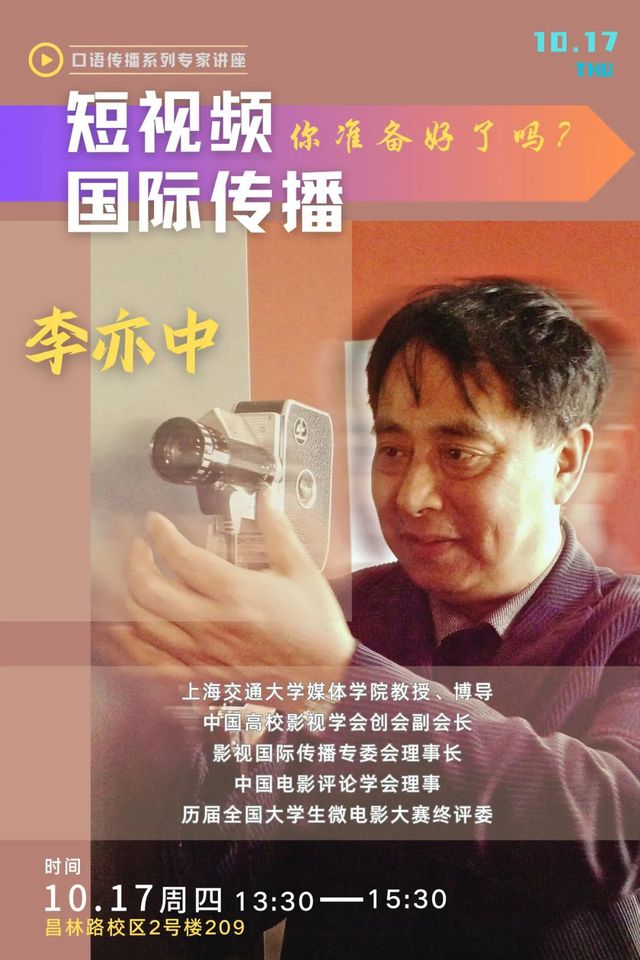2024年10月17日,秋意渐浓的suncitygroup太阳集团昌林路校区,迎来了一场主题为“短视频国际传播”的口语传播系列专家讲座。讲座在2号楼209教室内隆重举行,现场座无虚席。此次讲座的主讲嘉宾是中国高校影视学会创会副会长、影视国际传播专委会理事长、中国电影评论学会理事、上海交通大学媒体公司的李亦中教授。讲座由播音与主持系主任费泳老师主持。