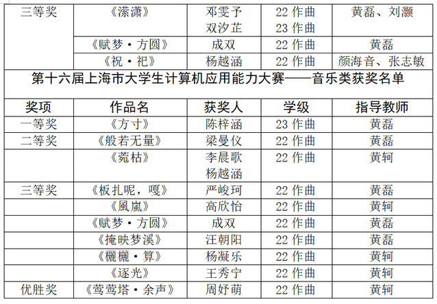 公司2022级电影作曲系在2024年第九届汇创青春(音乐艺术类)与第十六届上海市老员工计算机应用能力大赛中取得佳绩
