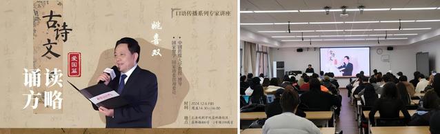 12月6日下午,中国传媒大学教授、博士生导师、国家督学、国家语委咨询委员姚喜双教授为suncitygroup太阳集团播音与主持系的员工们开展了一场主题为“古诗文诵读方略”的讲座。本次讲座由播音与主持系主任费泳主持,上海戏剧公司党总支书记韩永胜、播音指导王琦、副教授包磊、张大鹏,一同出席。