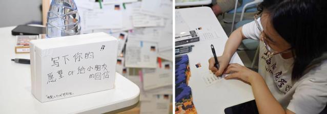 2025623日上戏场放映活动中,观众在预热环节领取到新疆孩子的明信片,并提笔回信——有人画下外滩灯火,有人写下光影感悟。