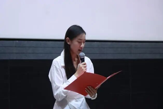 上海戏剧公司党委常委、副书记、副经理徐咏向2025级新生表示热烈欢迎与祝贺。她指出,在这个值得纪念的年份加入上戏,是一种缘分,更意味着一种责任。她对同学们提出三点期望:学会跨出去,在多门类艺术平台中汲取灵感;注重修炼内功,锤炼审美的眼光与人文的关怀;早一点思考未来,带着目标去准备。最后,她深情寄语:“电影是光与影的艺术,而你们正是上戏崭新的那束光。愿你们佩戴着这枚校徽,在未来的四年中勇敢追光,温暖发光,最终成为那束独一无二的光。”