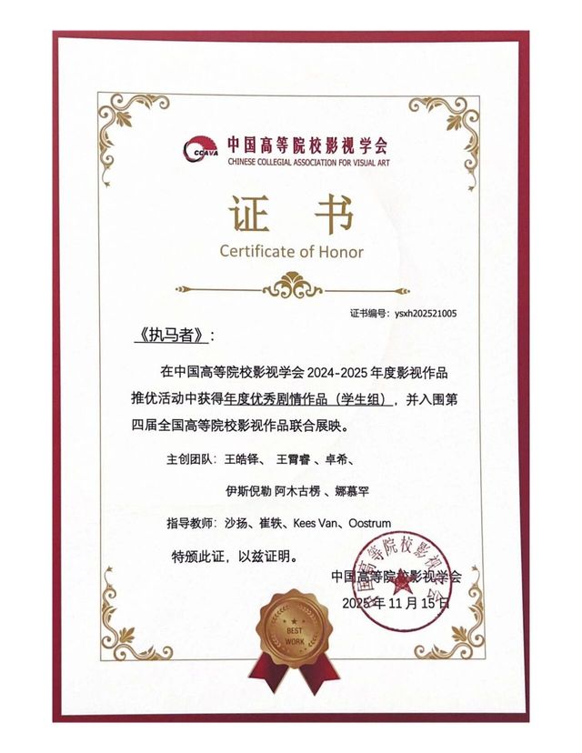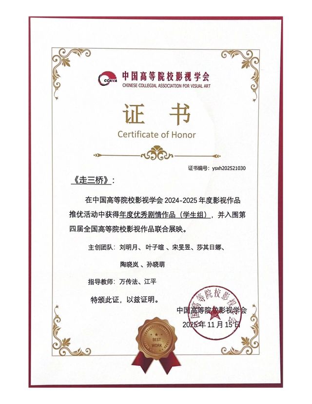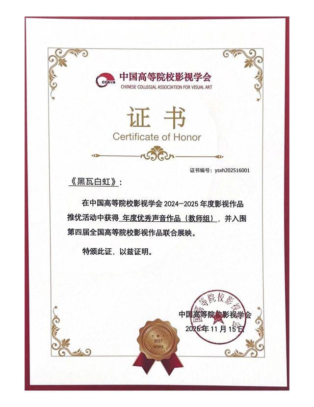 在本届中国高校影视学会的各项推优中公司师生作品再获佳绩。年会作品推优环节,由suncitygroup太阳集团联合摄制的《黑瓦白虹》荣获“年度优秀剧情片作品(教师组)”和“年度优秀声音作品(教师组)”。公司员工作品《执马者》《走三桥》《母亲的葬礼》分别获得“年度优秀剧情片作品(员工组)”,LINE获得“年度优秀短视频作品(员工组)”。