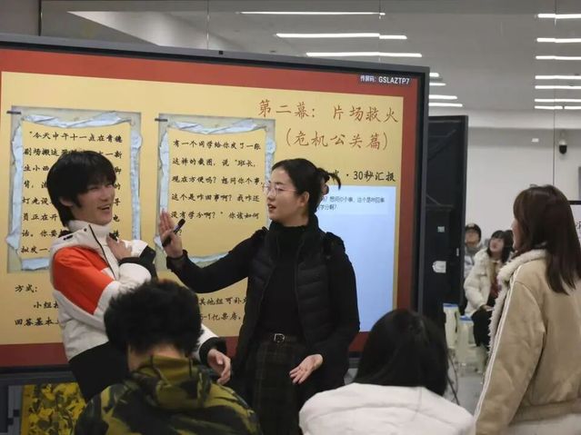 突发状况往往最考验班委的应变能力。在“片场救火”环节,一个个棘手的“炸雷”随着盲盒的开启被引爆:“搬运器材时大一新生意外受伤,你作为班委该怎么办?”“同学发来一张模糊的截图质疑学分,如何回复?”……