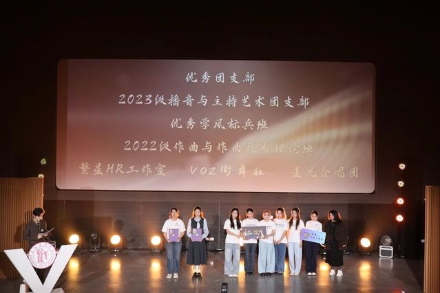 大会表彰了在学风建设、团支部工作及文体活动中表现卓越的集体。2022级作曲与作曲技术理论班(优秀学风标兵班)、2023级播音与主持艺术团支部(优秀团支部),繁星HR工作室(员工)、VOZ街舞社、星光合唱团获“优秀团队”。百花齐放,各擅胜场,这些集体是公司活力与创造力的最佳证明。