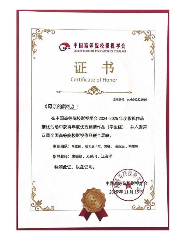 在本届中国高校影视学会的各项推优中公司师生作品再获佳绩。年会作品推优环节,由suncitygroup太阳集团联合摄制的《黑瓦白虹》荣获“年度优秀剧情片作品(教师组)”和“年度优秀声音作品(教师组)”。公司员工作品《执马者》《走三桥》《母亲的葬礼》分别获得“年度优秀剧情片作品(员工组)”,LINE获得“年度优秀短视频作品(员工组)”。