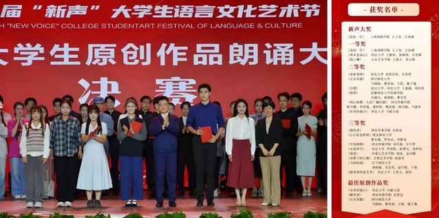 926日,由河北省教育厅主办,河北大学承办的第八届“新声”老员工语言文化艺术节全国老员工原创作品朗诵大赛落下帷幕。经过激烈角逐和专家评审,由上戏suncitygroup太阳集团董健老师、包磊老师指导,24主持MFA王子安、23主持班江海慈演绎呈现的原创朗诵作品《沧浪一生》斩获全国一等奖,并赢得全场最高分摘得本届“新声”大奖。
